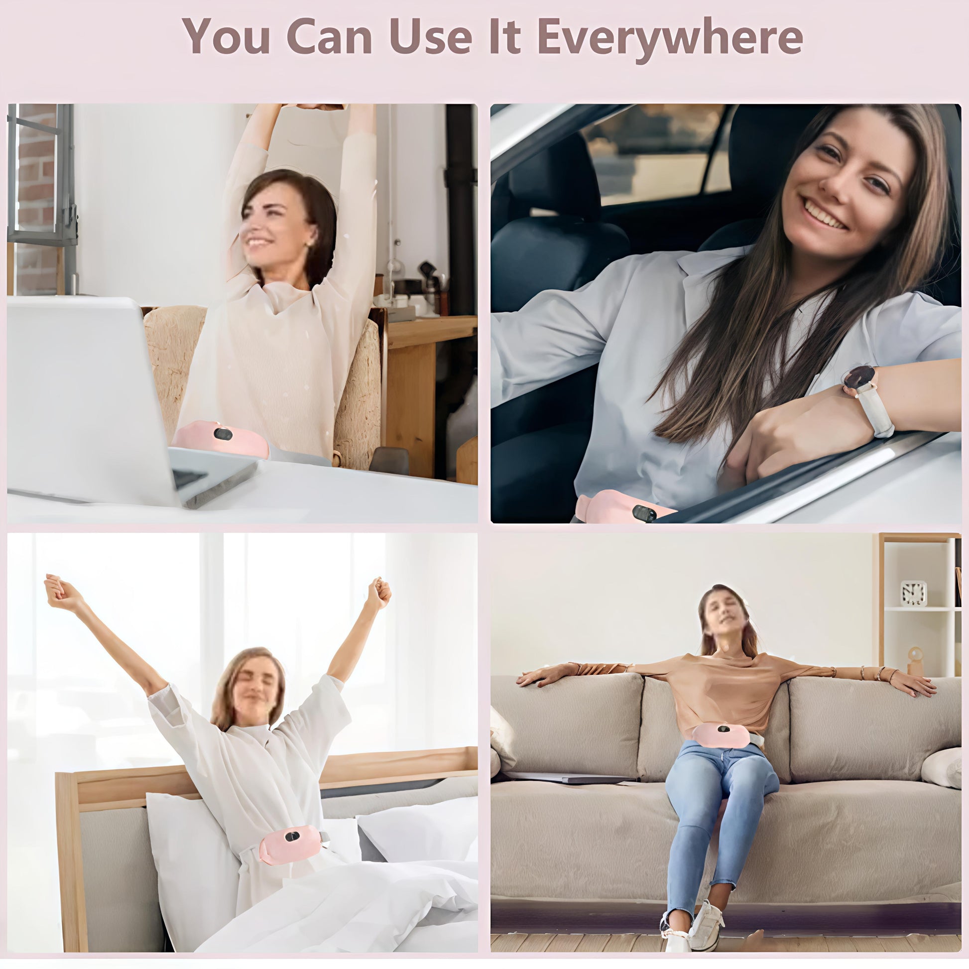 Nazaraa™ Heating Belt gives fast relief with adjustable heat + vibration massage, designed especially for women.