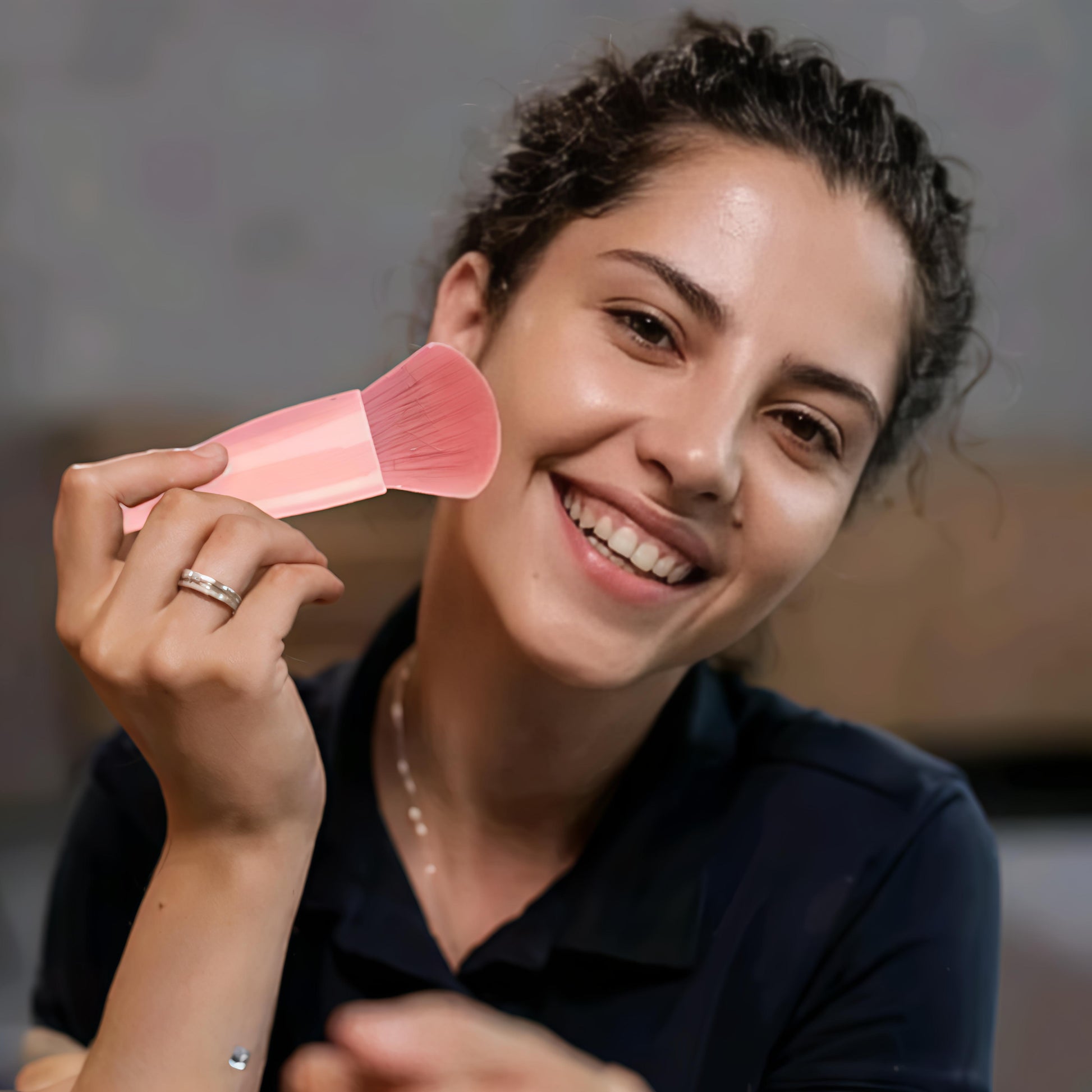 Premium Soft Pink Makeup Brush Set with Mirror Case (5-in-1 Compact Travel Kit)